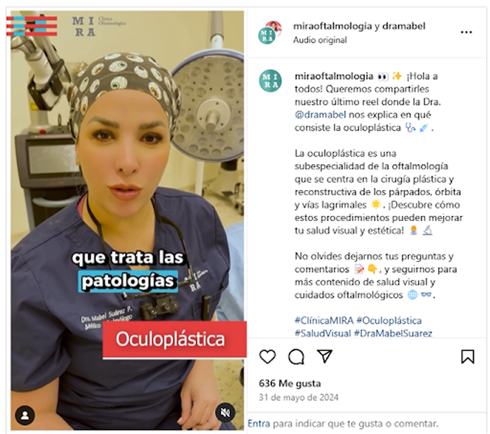 Por ejemplo: los parpados, que son grandes socios de los ojos, los cubren, los protegen, los hidratan. También tratan los problemas de la órbita de los ojos y de la vía lagrimal. Por lo cual la oculoplastía involucra varios procedimientos con fines de corregir estéticamente pero también pueden mejorar nuestra salud y calidad de vida.